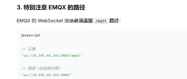 端口号冲突 :wss:// 通常使用 8083、8084 或 443 端口,而 1883 是普通 MQTT 的端口