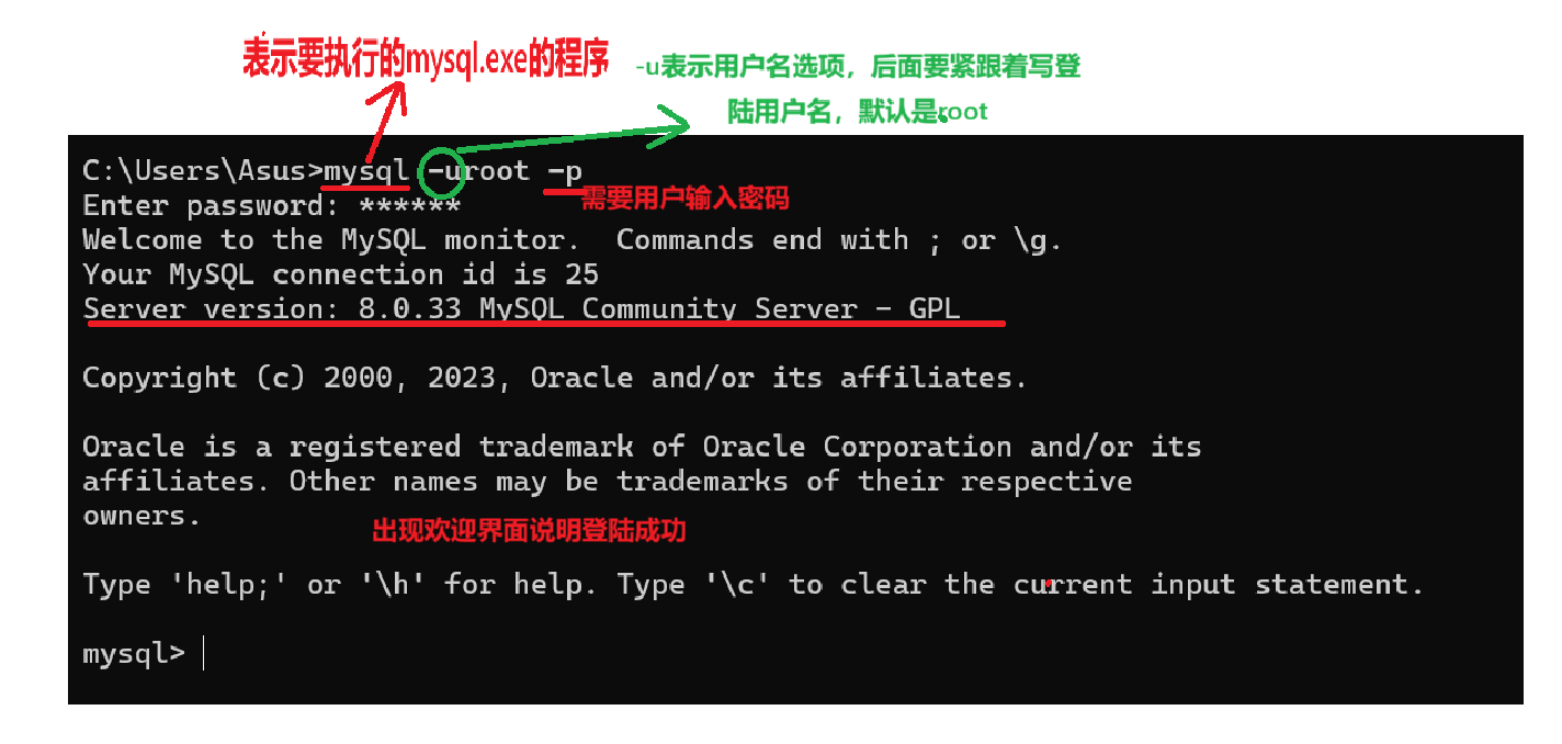1.先配置好环境变量,然后通过终端使用mysql.exe,即,win+r,输入cmd,输入"mysql -uroot -p"命令,然后输入密码即可