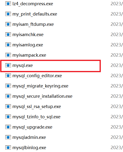 在bin文件夹中,可以发现有很多.exe的文件,其中有一部分文件(如mysql.exe)就被称为客户端程序