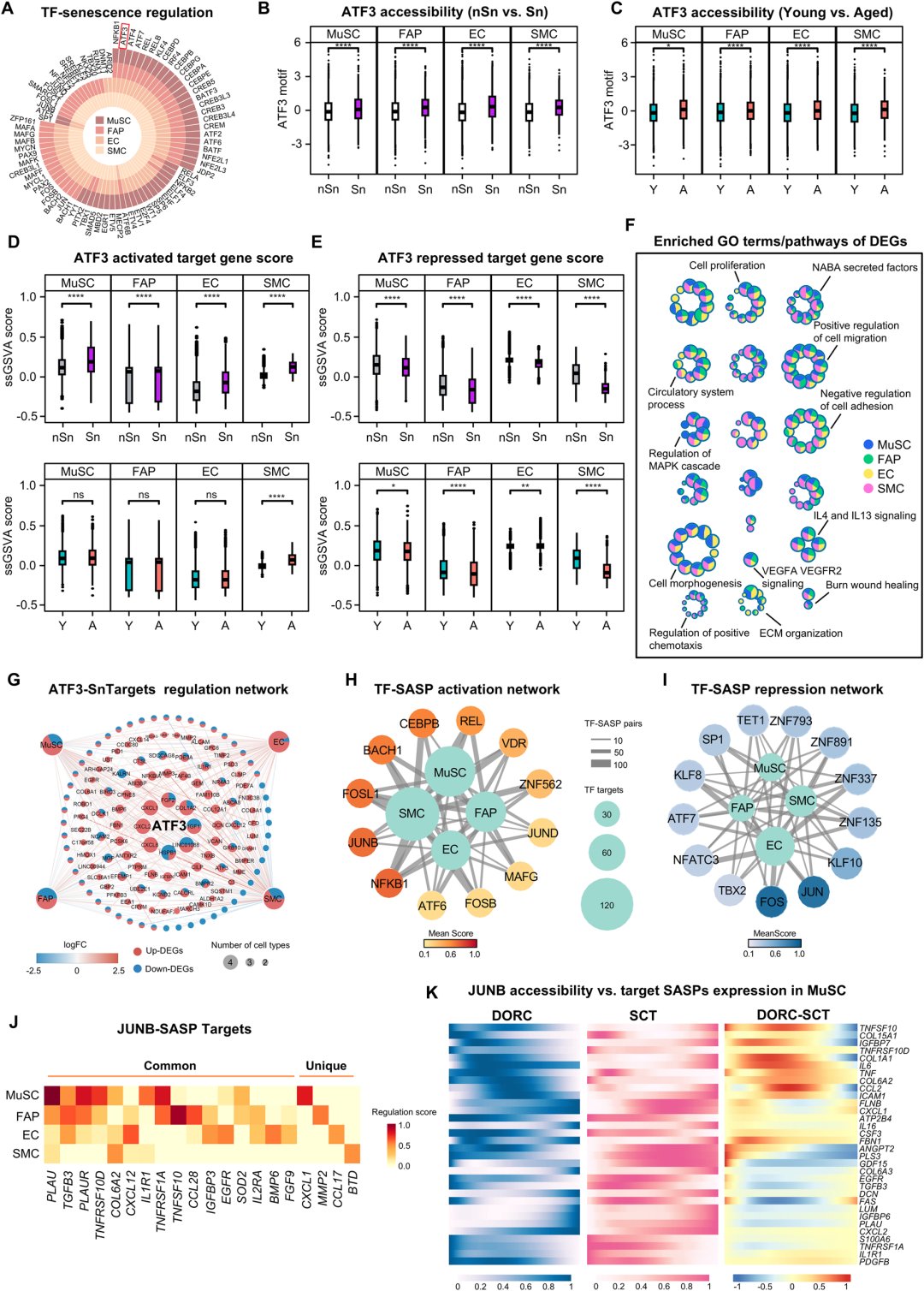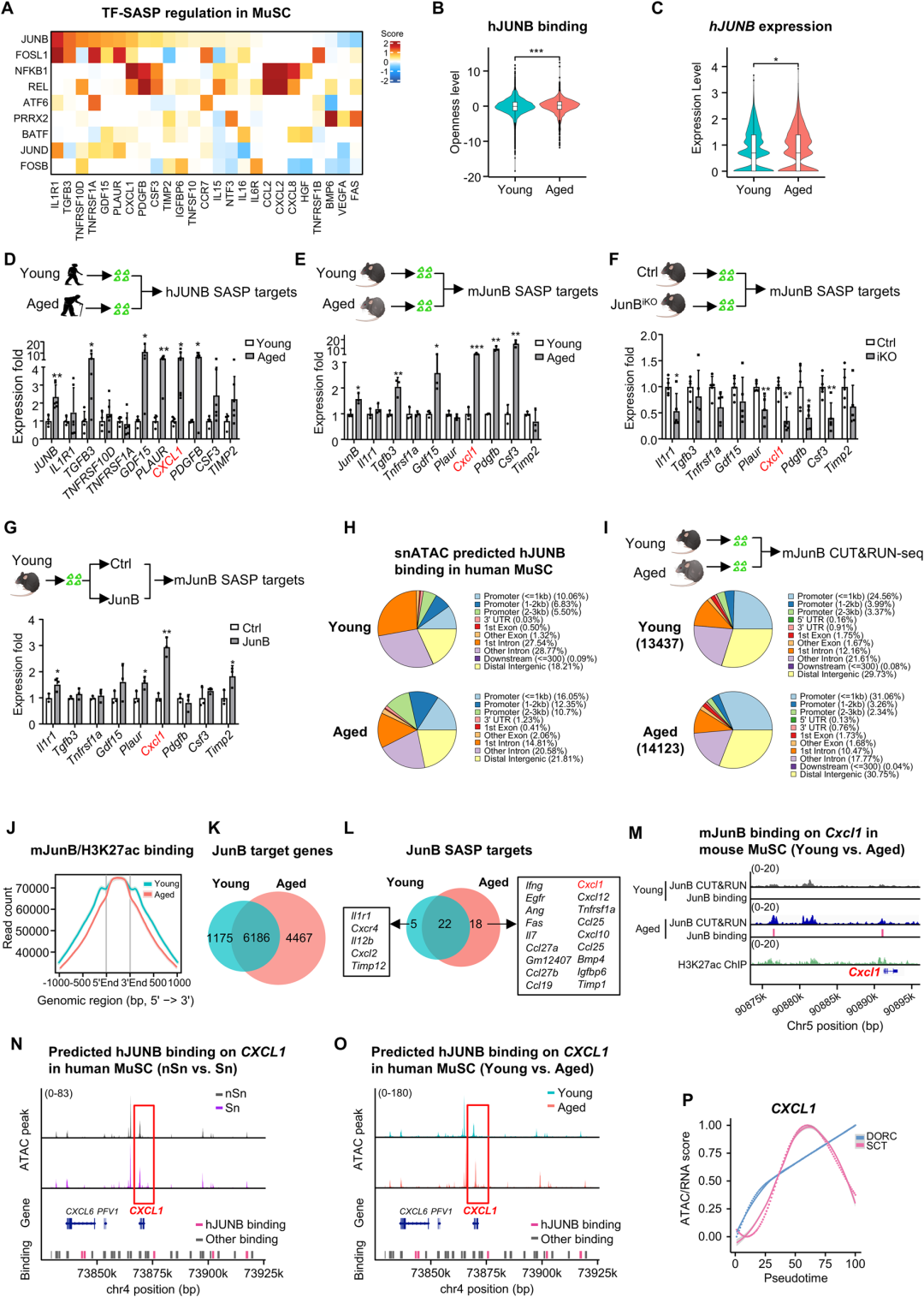 图5.JUNB 通过增强子调控激活衰老肌源性干细胞(MuSCs)的 SASP 诱导
