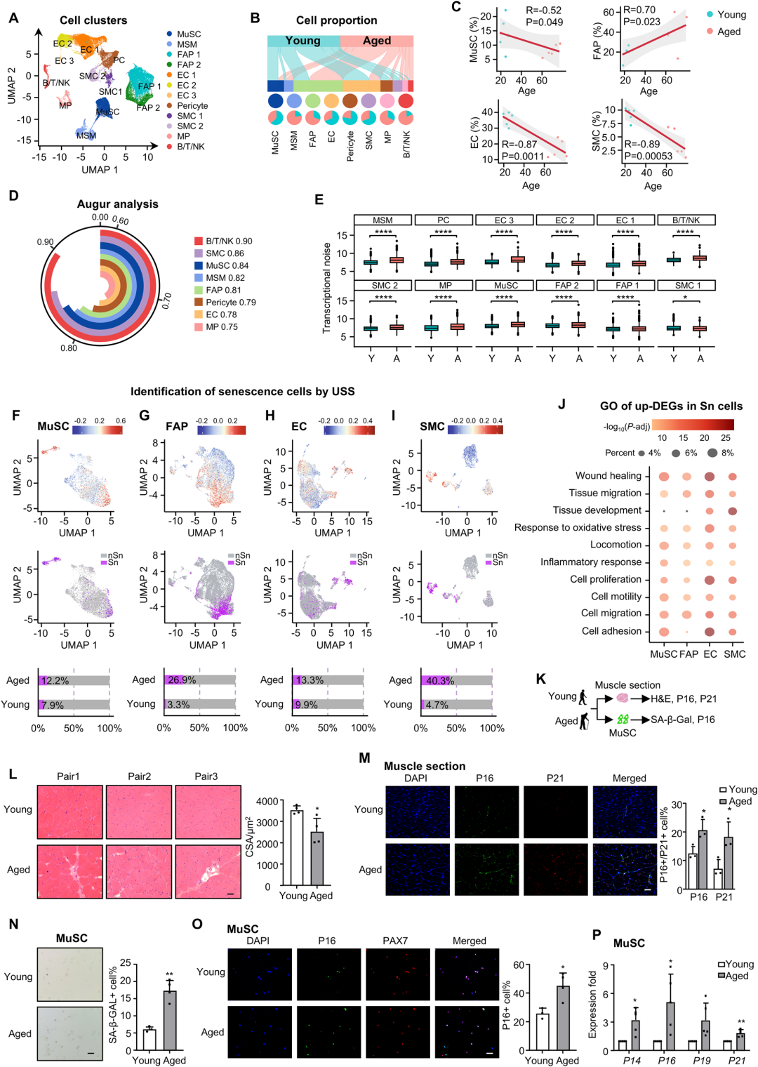 图2.人类肌肉中细胞衰老的异质性与动态变化