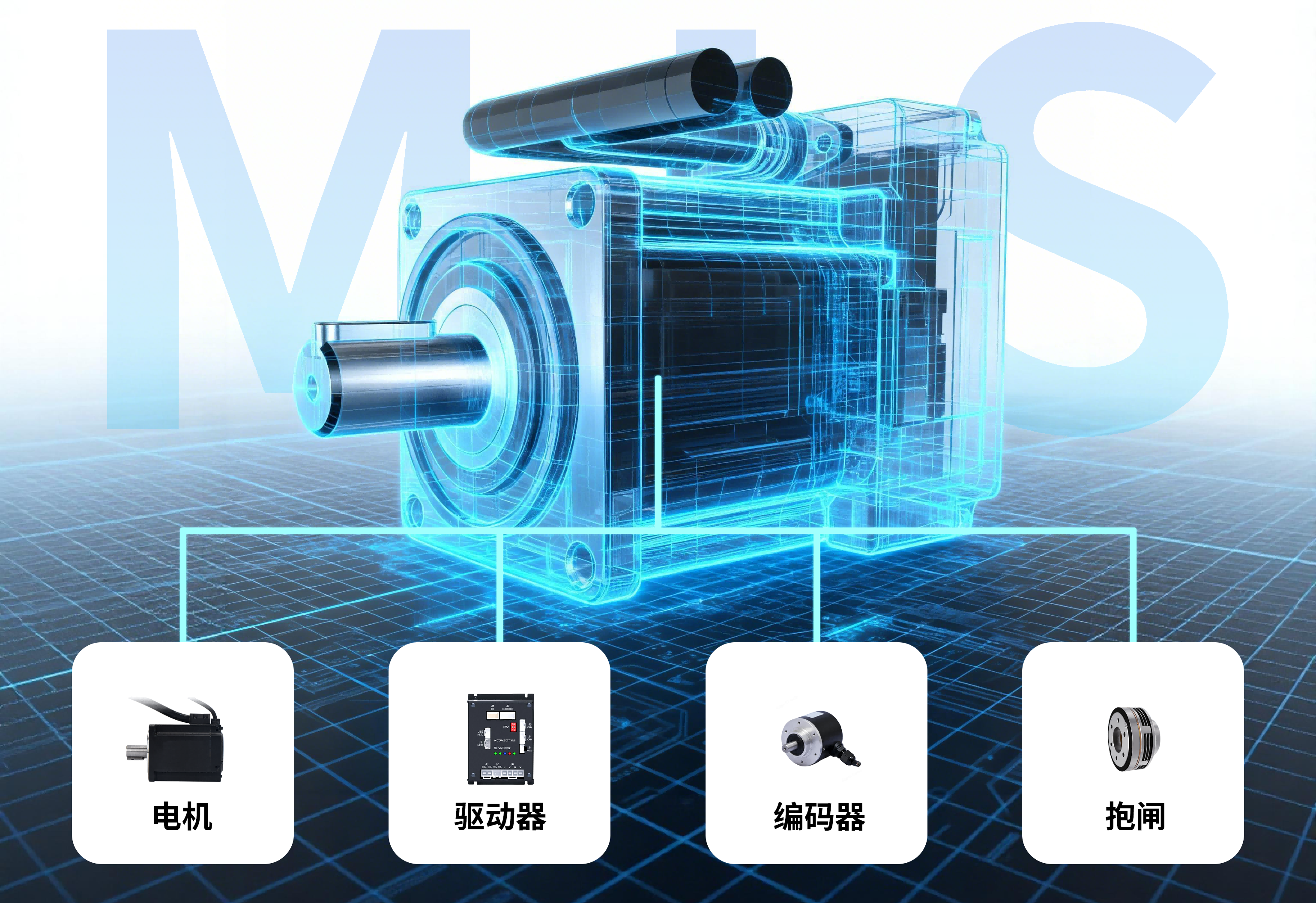 打破传统电机与驱动器分离的设计局限,MIS 系列集成式低压伺服电机将电机、驱动器、编码器、抱闸等 核心部件高度整合 ,内置制动电阻与多种保护电路,直接省去额外装配空 间与线缆 成本。