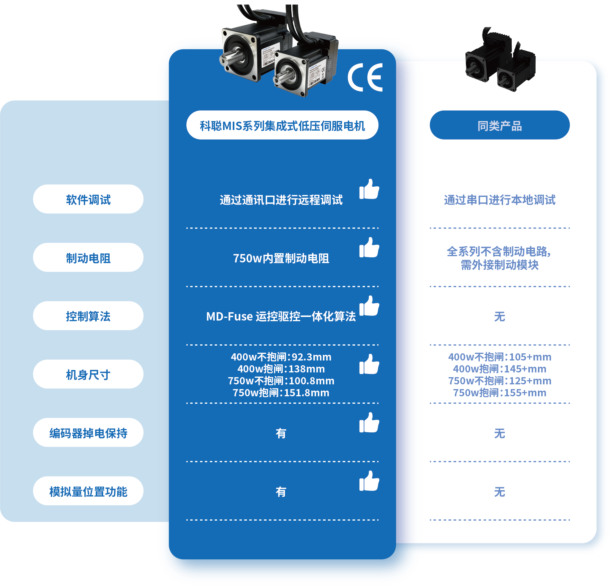 与同类产品相比,MIS 系列集成式低压伺服电机体积约缩小20%,让紧凑空间布局不再妥协,完美适配对安装空间要求严苛的各类驱控场景。