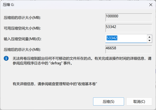 下图选项中,输入压缩空间量即想要缩小的空间。