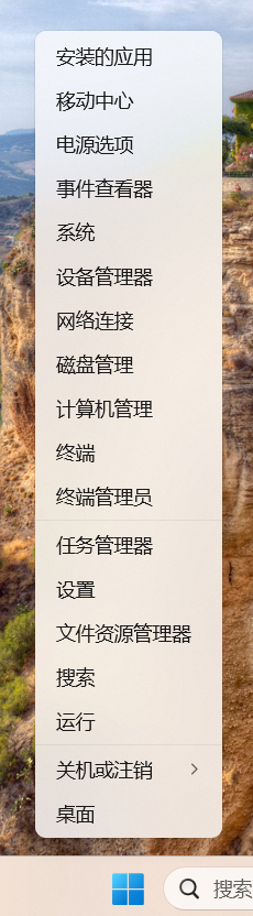 右键点击windows按键如下,选择磁盘管理。