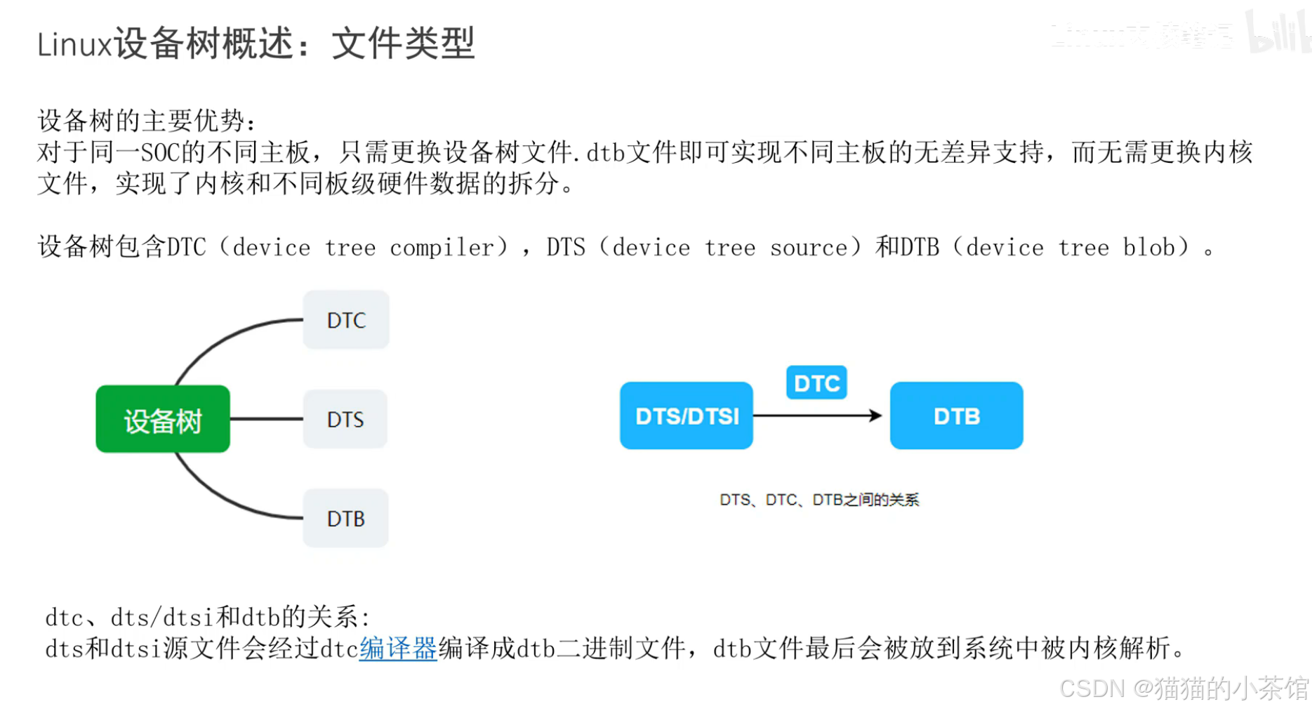 去硬编码:ARM SoC 板级差异巨大,内核合入困难。Device Tree 让硬件信息由