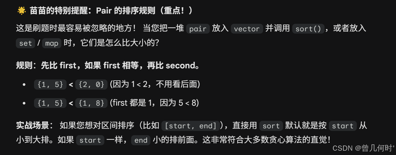 // 逻辑:return true 代表 a 应该排在 b 前面