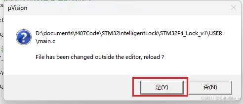 在 VSCode 上保存编写的代码后,返回 Keil 页面,会提示是否更新,点击是就可以完成更新:
