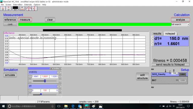 **薄膜厚度:**薄膜厚度的测量是基于光波的干涉现象,具体可表述为光束照射在薄膜表面,由于入射介质、薄膜材料和基底材料具有不同的折射率值和消光系数值,使得光束在透明/半透明薄膜的上下表面发生反射,反射光波相互干涉,从而形成干涉光,这些干涉光在不同相位处的强度将随着薄膜的厚度发生变化。通过对干涉光的检测,结合适当的光学模型即可计算得到薄膜的厚度。