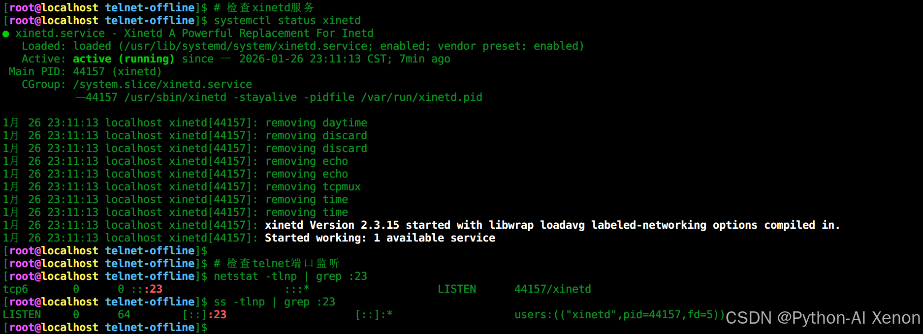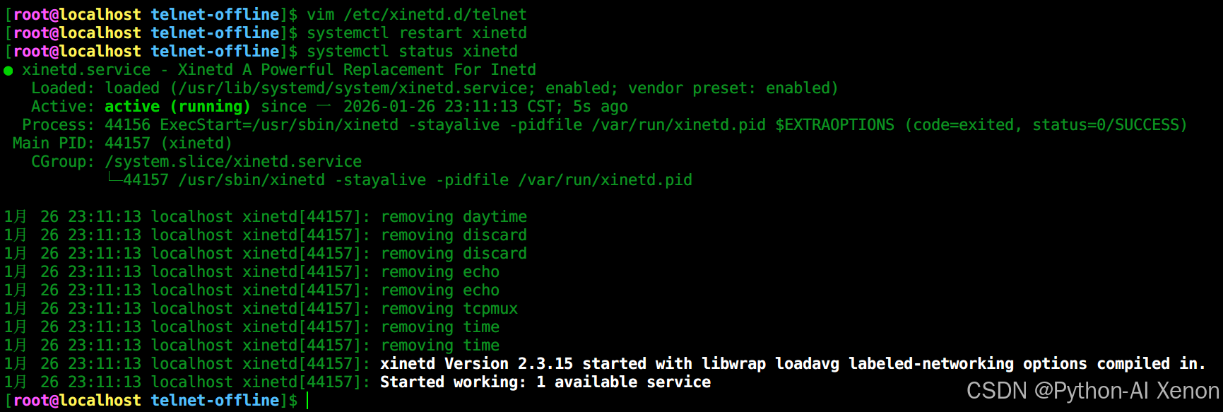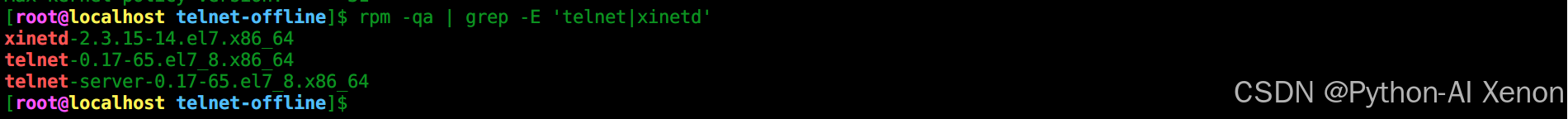 yum localinstall -y telnet-server-*.rpm xinetd-*.rpm