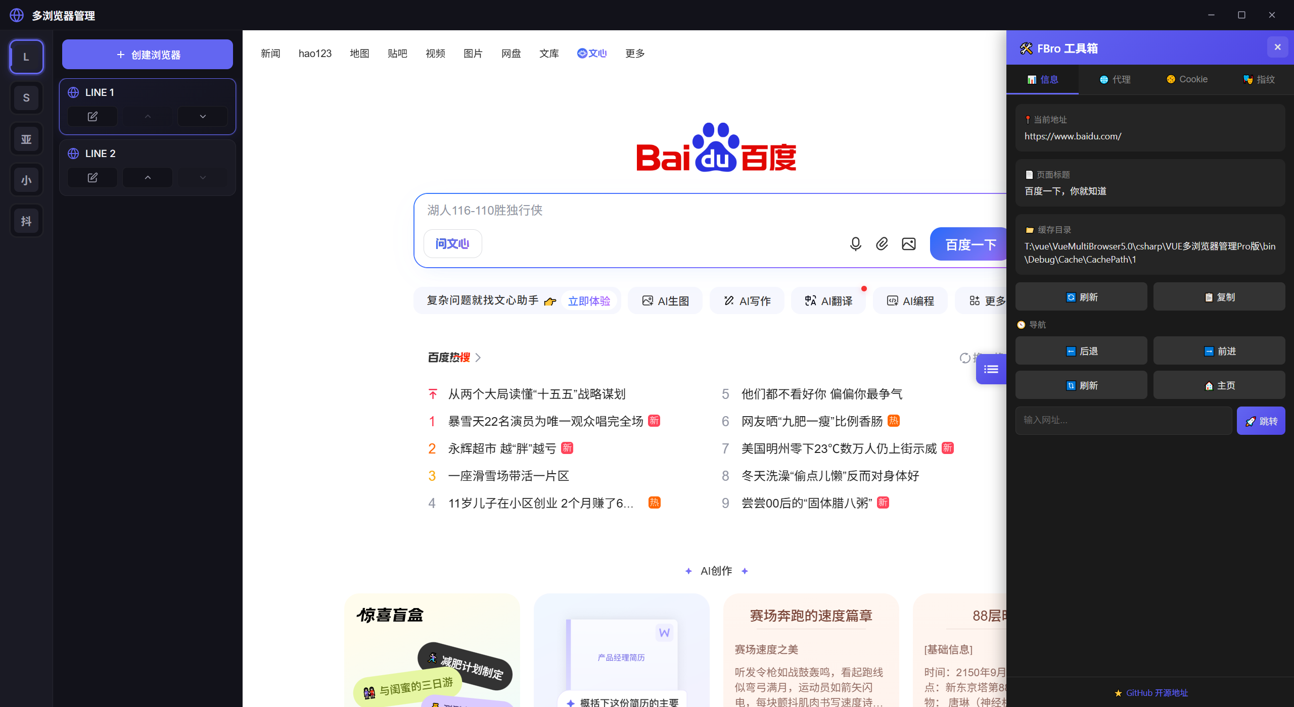 分享一个基于 Vue 3 + C# WinForms + FBroSharp (CEF) 开发的多浏览器实例管理工具,现已完全开源。