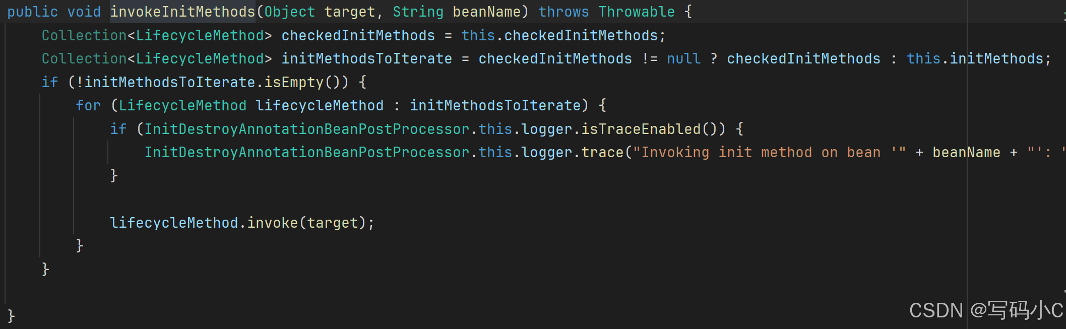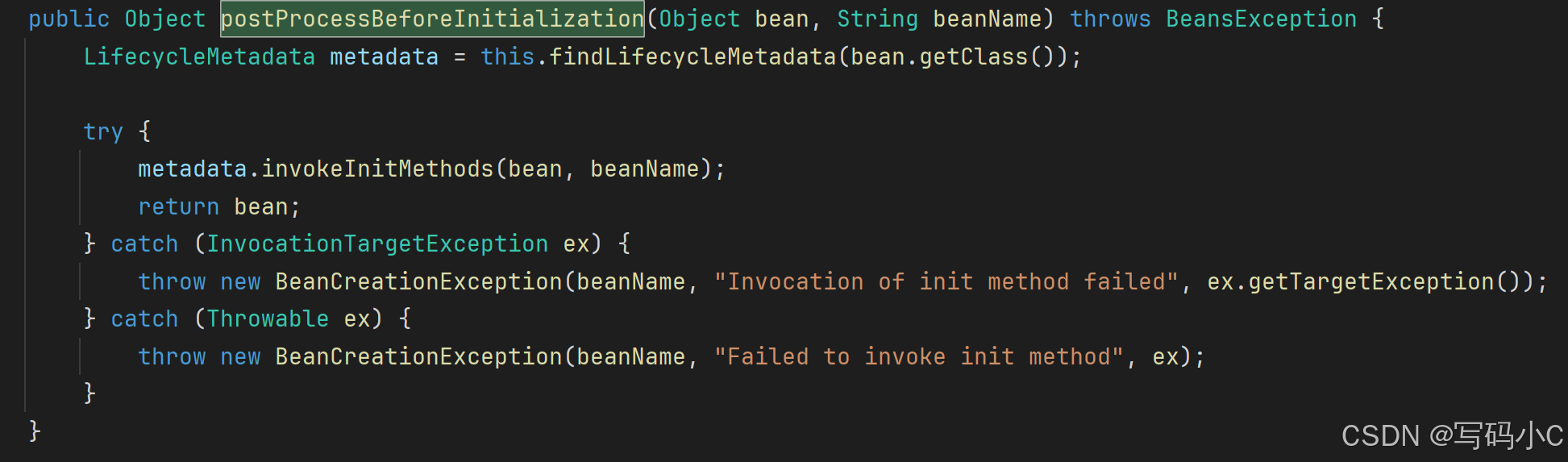 当 Spring 创建 Bean 走到 初始化阶段 时,CommonAnnotationBeanPostProcessor 会介入: