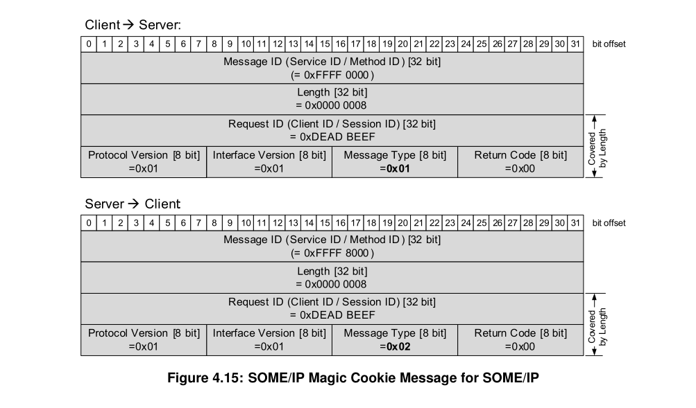 TCP 是流式协议,测试工具 如何找到 SOME/IP 消息边界? 定期插入 Magic Cookie 消息作为同步点。目的是为了调试工具中间接入的时候,知道流式数据的边界在哪里。正常通信可以不使用