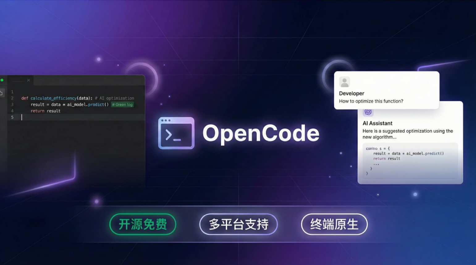 在各种 AI 编程工具满天飞的今天,你是否厌倦了 Claude Code 和 Cursor 的订阅费用?OpenCode 是一个完全开源、免费的 AI 编程代理(AI coding agent),支持在终端、桌面应用和主流 IDE 中与 AI 交互完成代码任务。