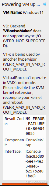 Ubuntu often has KVM (Kernel-based Virtual Machine) enabled by default, which conflicts with VirtualBox's own virtualization engine.
