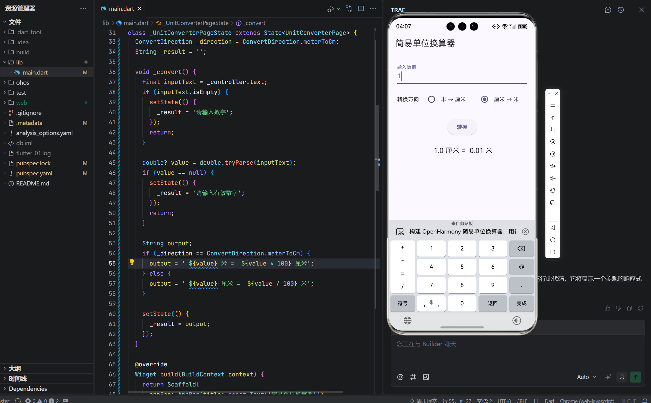 在 OpenHarmony 的 IoT 和生活场景中,用户常需进行简单单位换算:
