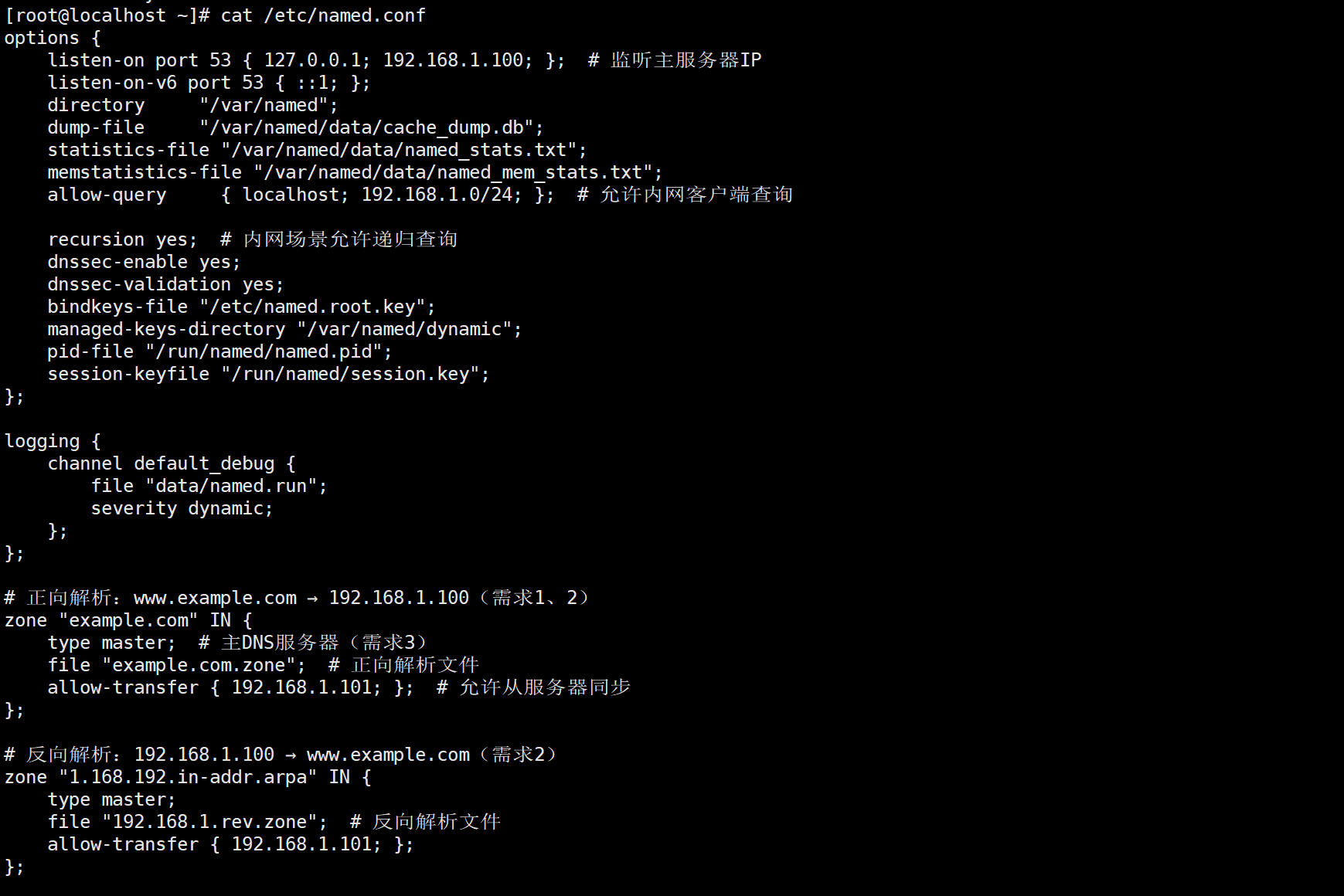 masters { 192.168.1.100; }; # 指向主DNS服务器