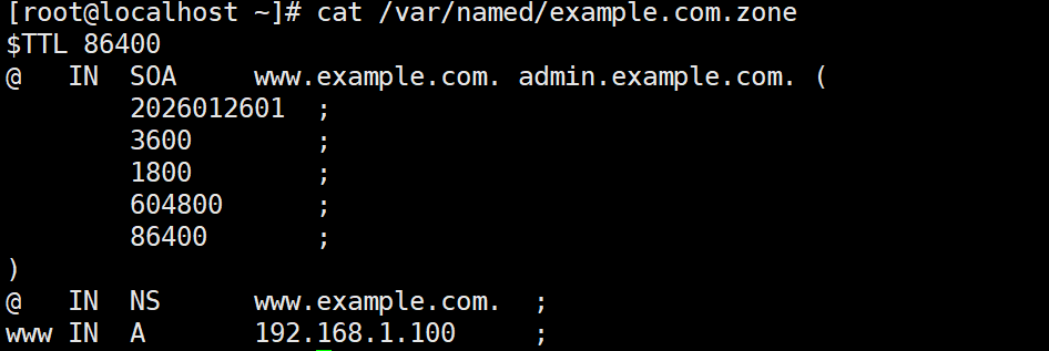 www IN A 192.168.1.100 ; 正向解析核心记录