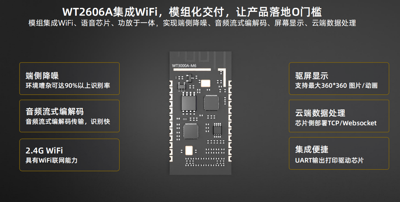 随着时间的推移越来越多的智能音箱正在走进千家万户,智能音箱对答如流的背后,那颗负责"听懂"与"回应"的芯片,才是真正的无名功臣。它不像屏幕或扬声器那样能被直接感知,却决定了每一次交互的流畅与智能。今天,让我一起聚焦一颗能够用在智能音箱AI上的交互芯片WT2606A,看看它为什么可以成为众多智能音箱的智慧核心。