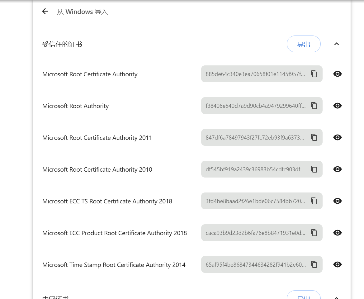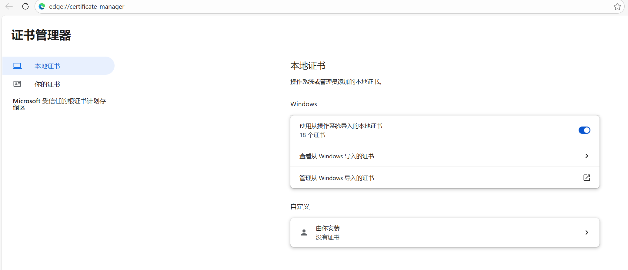 再点击「查看从Windows导入的本地证书」,如下图所示: