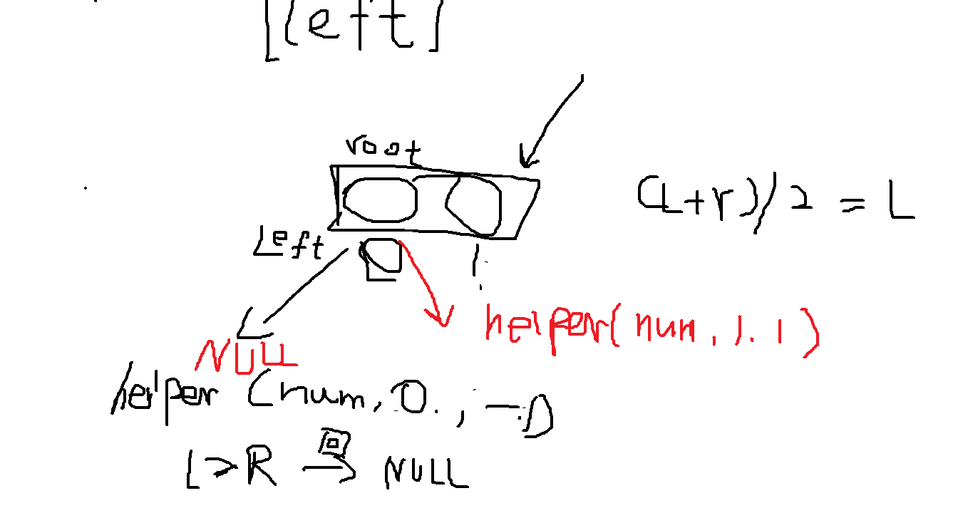 root->left = helper(nums, l , mid - 1);