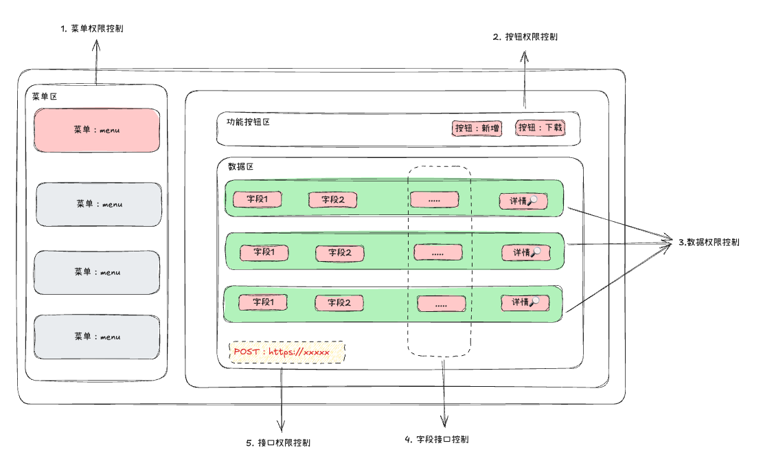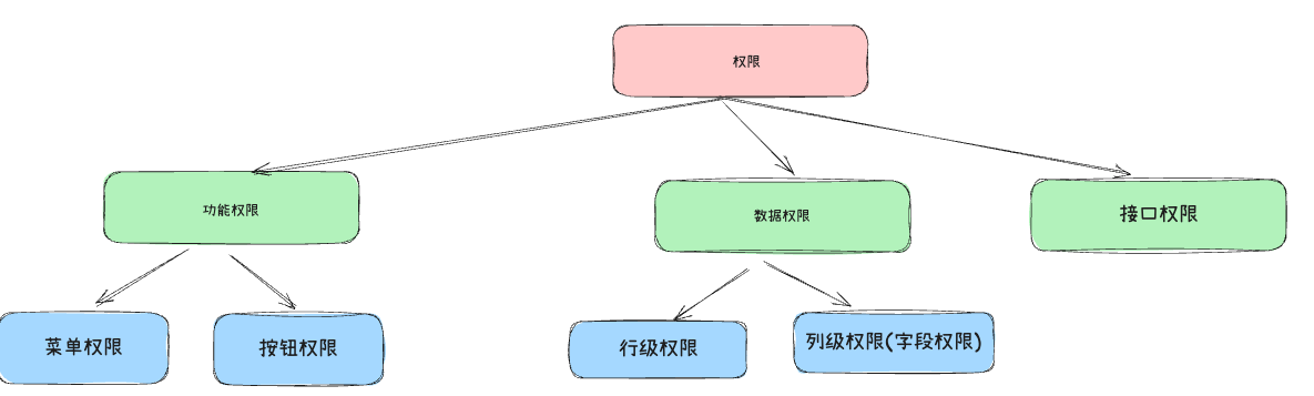 | 接口权限 | 控制后端接口的调用权限,防止越权操作,比如通过 postman 直接访问接口。例如:只有管理员才能调用 /api/deleteUser |
