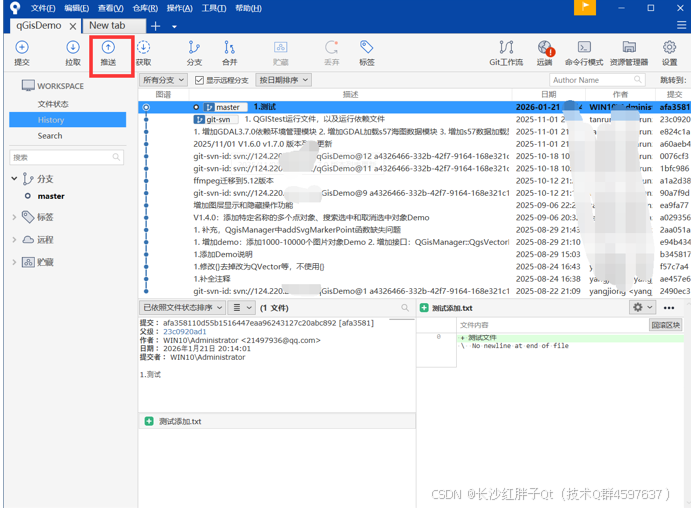 提交后,记得马上进行推送: