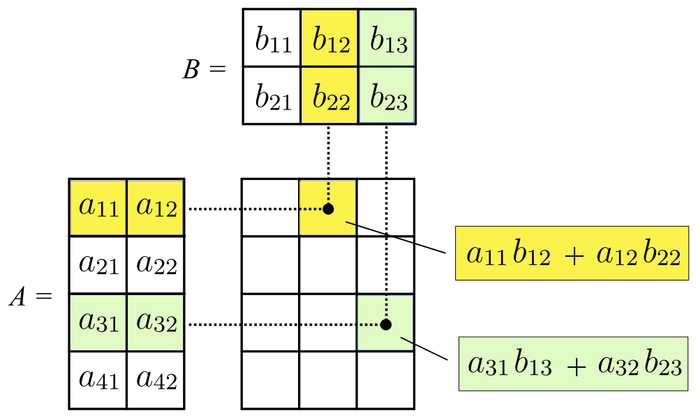 cij=(A 的第 i 行)⋅(B 的第 j 列)