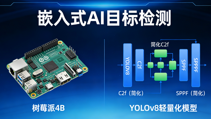 摘要:针对嵌入式设备算力有限、存储资源紧张的痛点,本文提出一种基于YOLOv8的轻量化目标检测方案。通过模型剪枝、量化压缩与迁移学习优化,在保证检测精度的前提下,大幅降低模型参数量与推理耗时,使其能稳定运行于ARM架构嵌入式设备。实验以树莓派4B为载体,针对COCO2017子集进行测试,结果显示优化后模型参数量减少62.3%,推理速度提升至28.7FPS,mAP@0.5达72.1%,满足实时检测场景需求。该方案为智能监控、边缘计算等嵌入式AI应用提供可落地的技术参考。