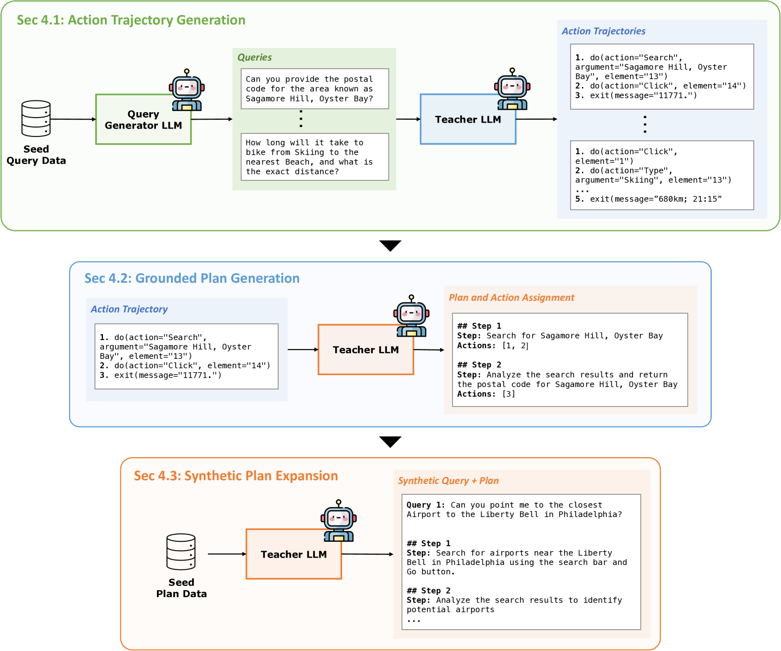 图3:三阶段合成数据生成------从轨迹生成到计划标注再到大规模扩展