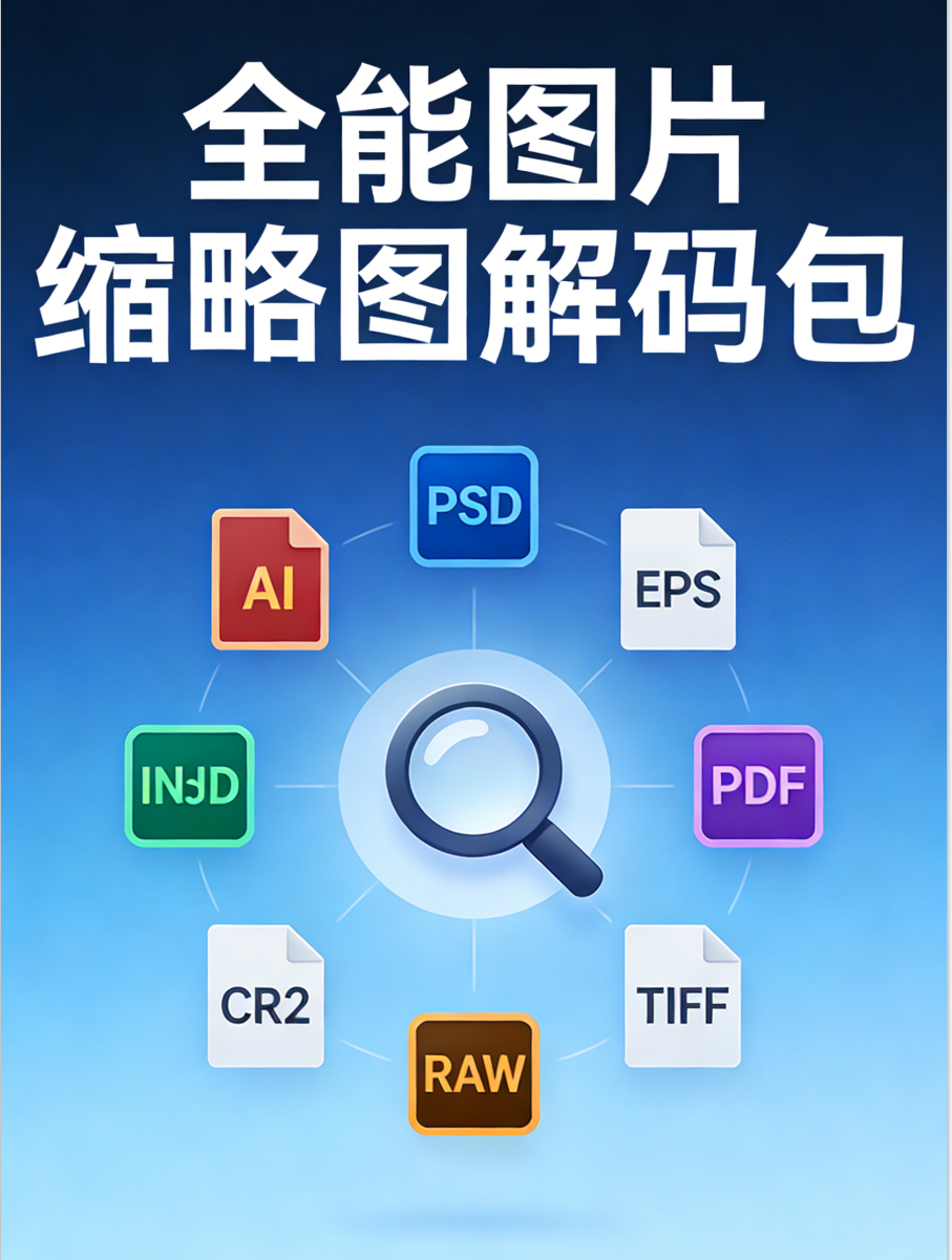 对于设计师、摄影师及多媒体工作者而言,大量专业格式文件无法直接预览缩略图,往往会拖累工作效率。这款全能图片缩略图显示解码包,虽体积略大,但能直接解码AI、PSD、EPS、PDF、INDD、TIFF、CR2、RAW等格式,让资源管理器秒显缩略图,无需启动专业软件,实用性拉满。