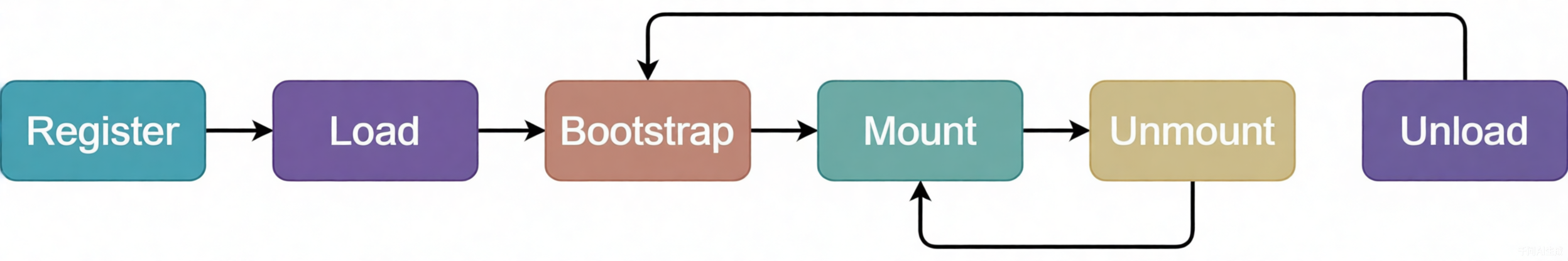 ► 每个微应用需要暴露三个生命周期函数:bootstrap、mount 和 unmount。当路由匹配时,Single-SPA 会加载对应的微应用,并依次调用其生命周期函数。