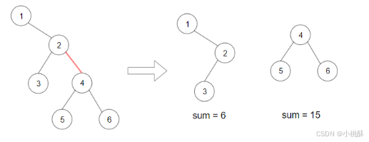 以如下二叉树为例,依次分析每个节点,下面是根节点的初始状态,将各个参数重置为 0,temp是当前节点孩子子树的和+当前节点值;注意这里的left 和 right 分别指的左孩子子树的和、右孩子子树的和,不是左孩子和右孩子的值,在代码中为 left = DFS(2);right = DFS(3);是递归调用函数后返回的值。