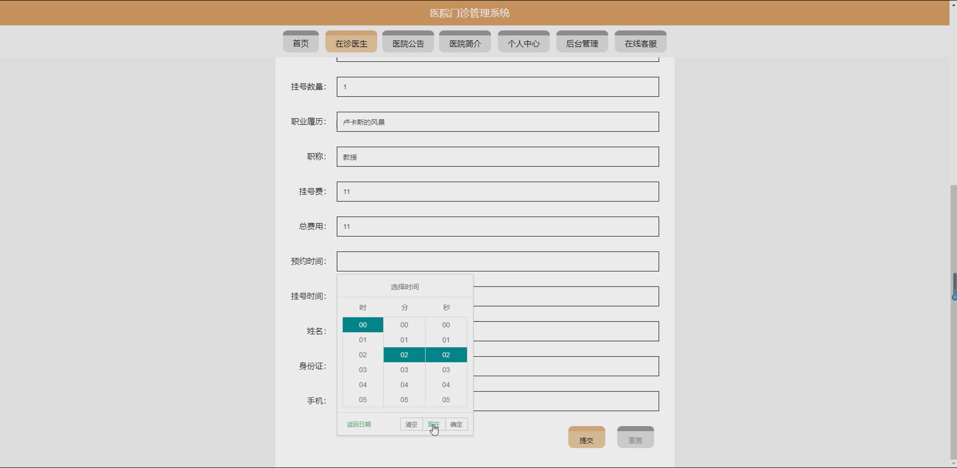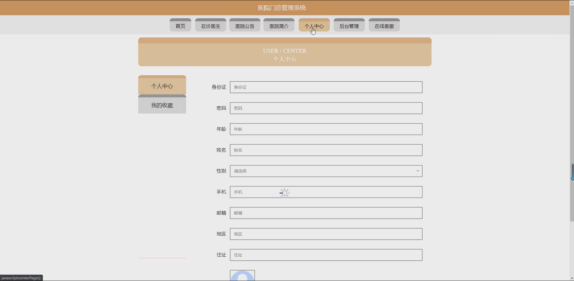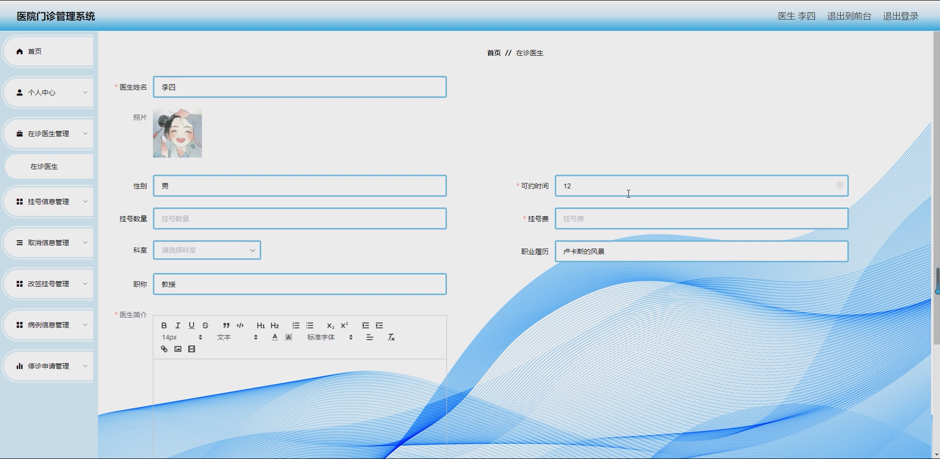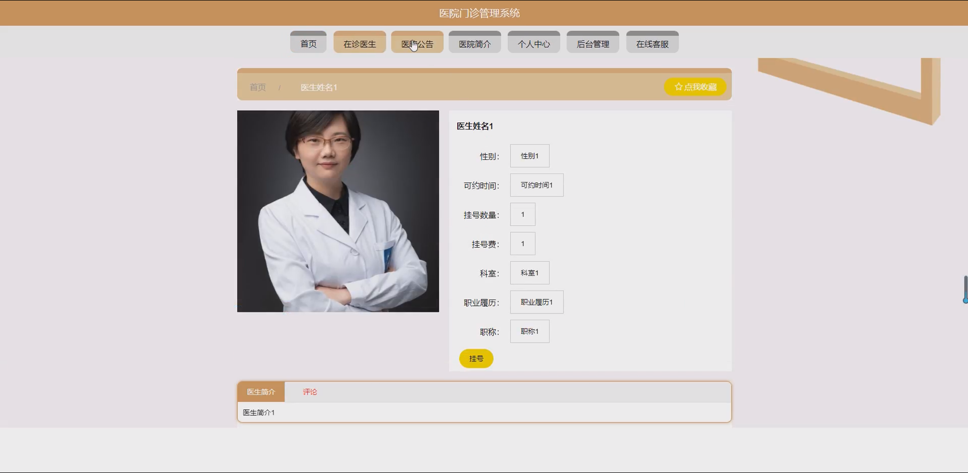 系统项目功能:用户,医生,在诊医生,挂号信息,取消信息,科室,病例信息,停诊申请,医院公告,医生管理员