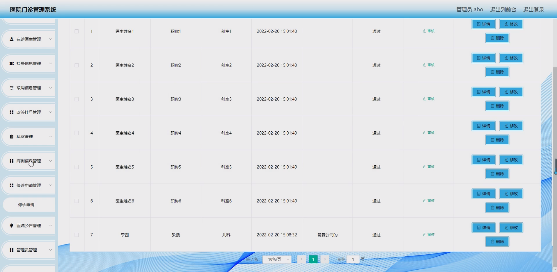 诊疗相关管理模块:涵盖停诊申请、病例信息管理,实现医生在线提交停诊申请、医生管理员审核,用户和医生便捷查询、管理病例信息,规范诊疗相关流程,确保信息可追溯。