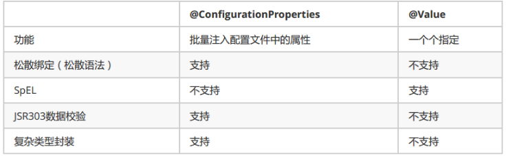 @Value获取值和@ConfigurationProperties获取值比较