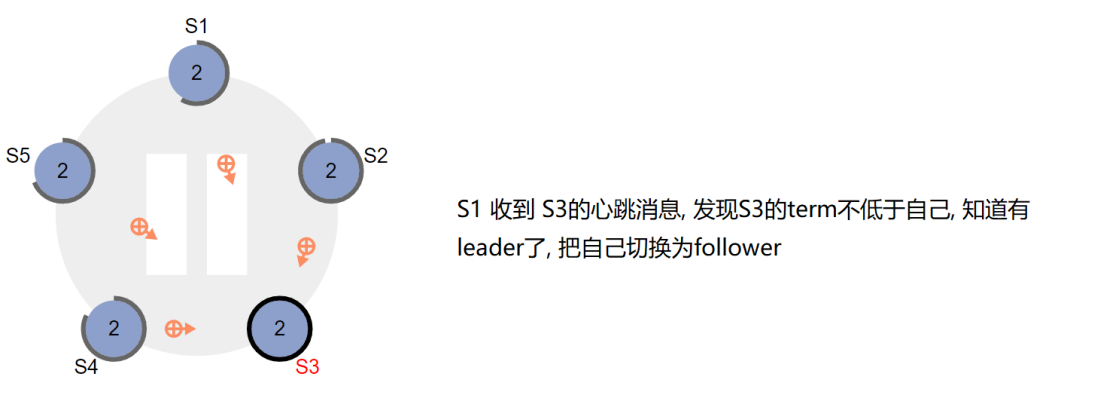 如果一个节点的当前任期号比其他节点小,那么它就将自己的任期号更新为较大的那个值.