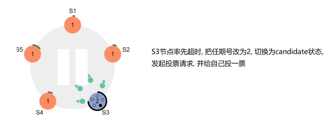 3、Candidate递增任期号,先投自己一票,然后并行向其他节点发送RequestVote RPC