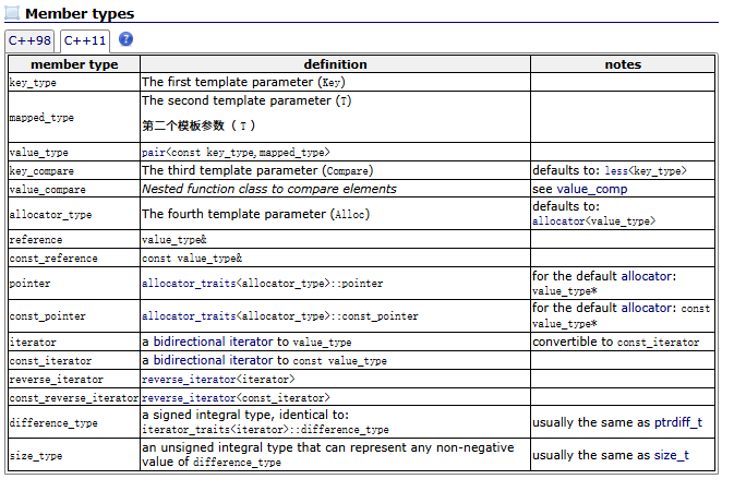 cplusplus中关于map的文档:map - C++ Reference
