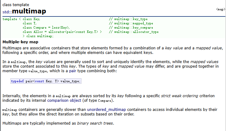 cplusplus中关于multimap的介绍:multimap - C++ Reference
