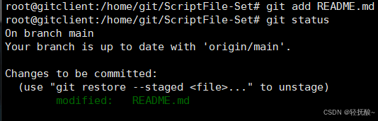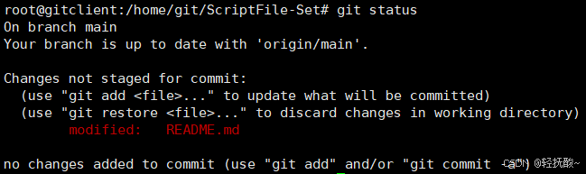 # 2. 可以查看当前仓库的状态,会显示修改的信息具体如下图