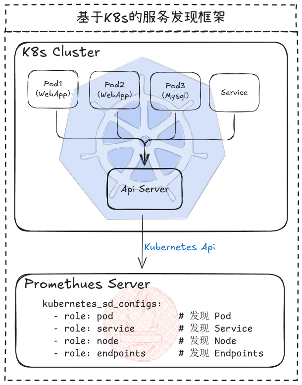 role:可选值包括pod、service、node、endpoints、ingress。Prometheus 会持续监听 API Server,当有新的资源创建或旧资源删除时,会自动更新监控目标。需配置RBAC权限
