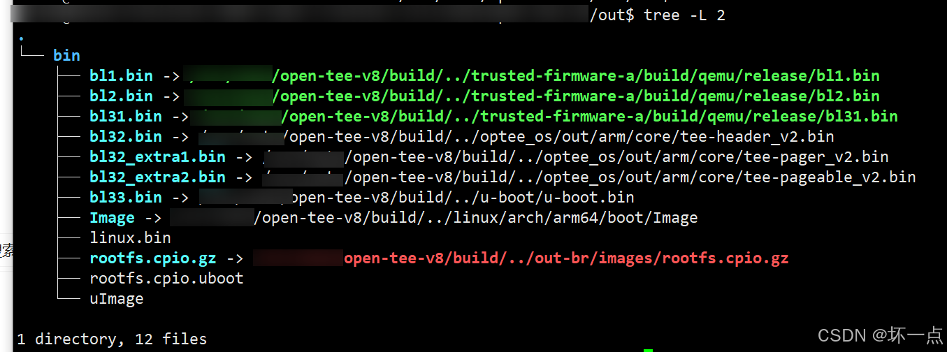 编译完成后将在optee的根目录下生成out目录,该目录存放着qemu方式运行OP-TEE时需要的镜像和相关文件。