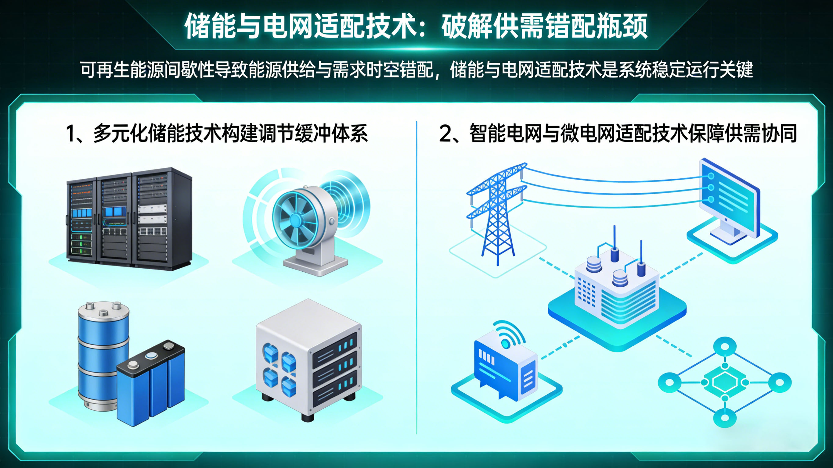 可再生能源的间歇性导致能源供给与需求存在时空错配,储能技术与电网适配技术的突破,是保障能源结构优化后系统稳定运行的关键。