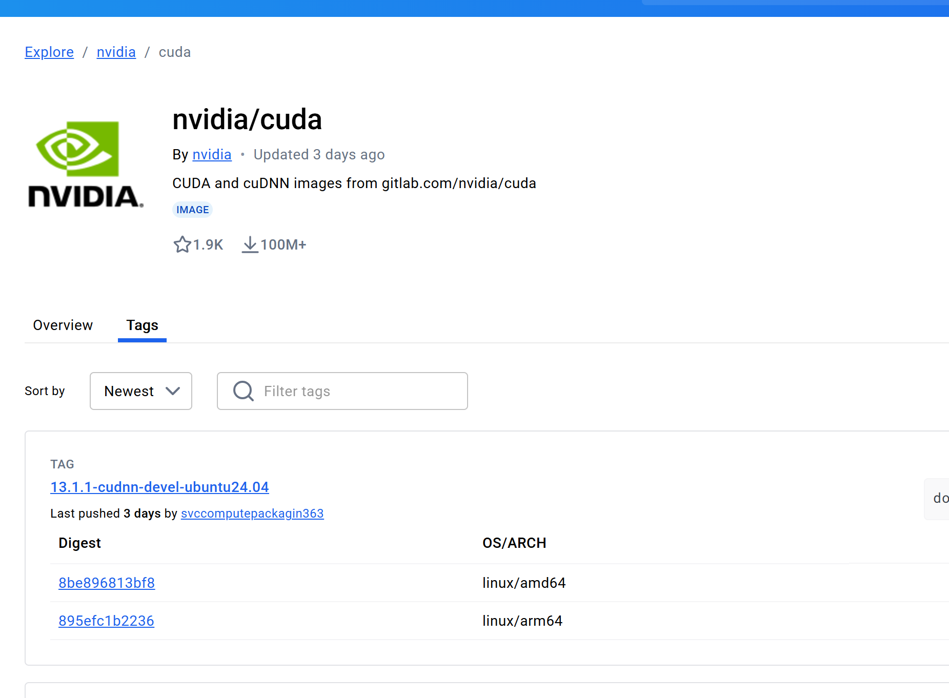https://hub.docker.com/r/nvidia/cuda