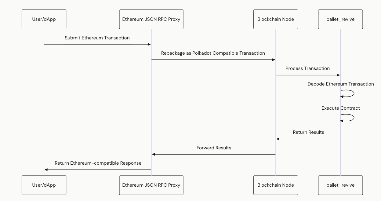 pallet_revive 是负责执行智能合约的运行时模块。它通过以下流程处理以太坊风格的交易: