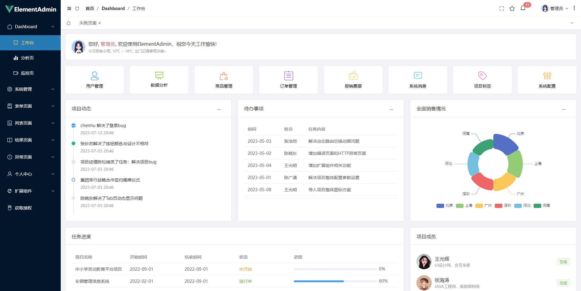 基于Vue3的通用型后台管理模板,界面简洁美观、适用于搭建各类型后台管理框架