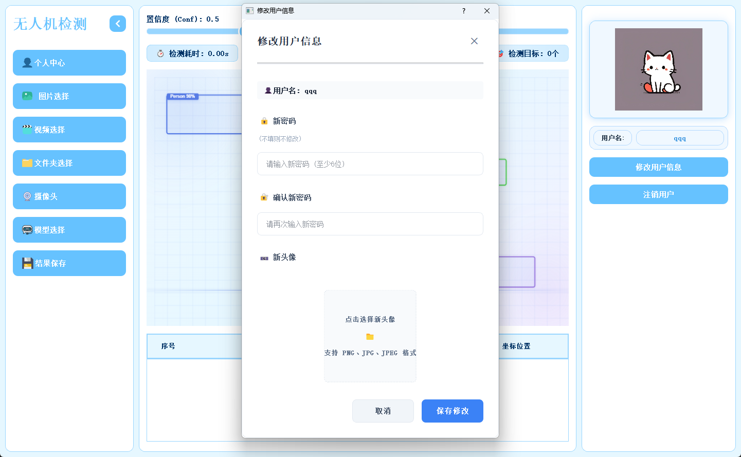 用户可在此模块中修改密码或更换头像,个人信息支持随时更新与保存。