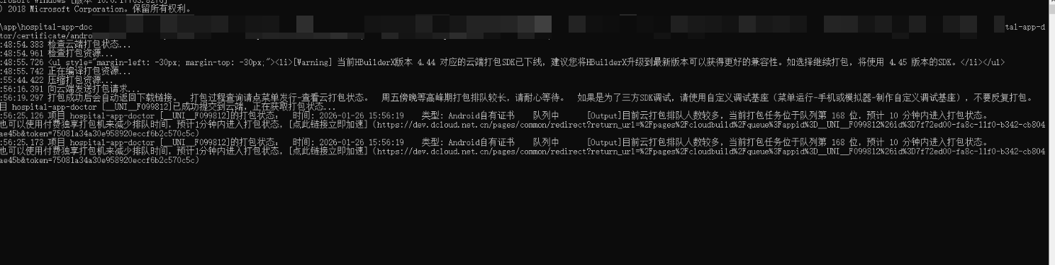 首先打包之前需要注意,该项目执行过手动并且打包可以成功 ,没有问题,项目已经在HBuilderX打开但是没有运行,命令打包请到项目的路径 cmd 输入命令