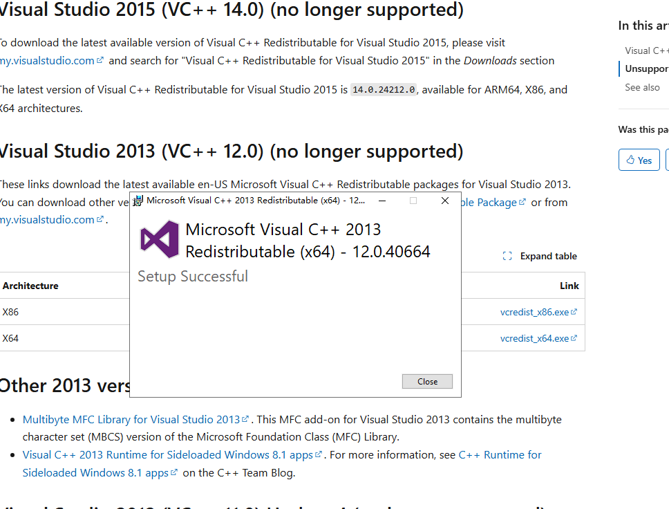 微软 Visual C++ 可再发行程序包 (Microsoft Visual C++ Redistributable):建议下载并安装 X64 和 X86 两个版本。